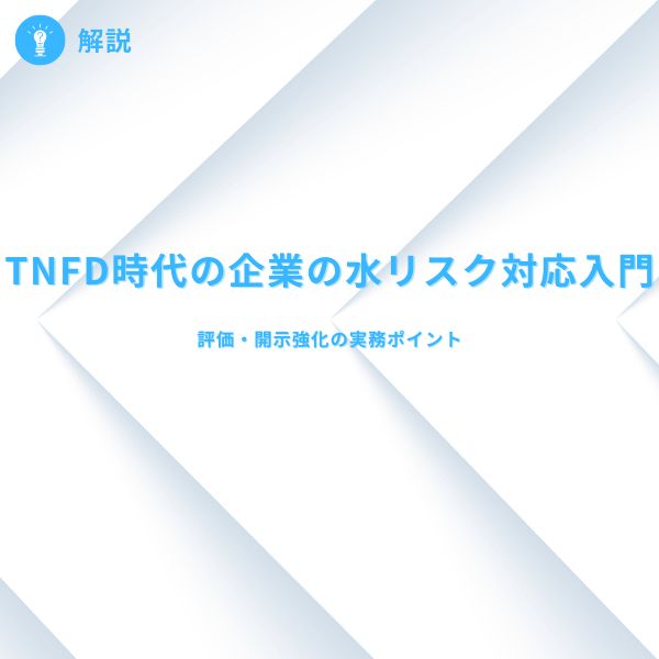 TNFD時代の企業の水リスク対応入門:評価・開示強化の実務ポイント